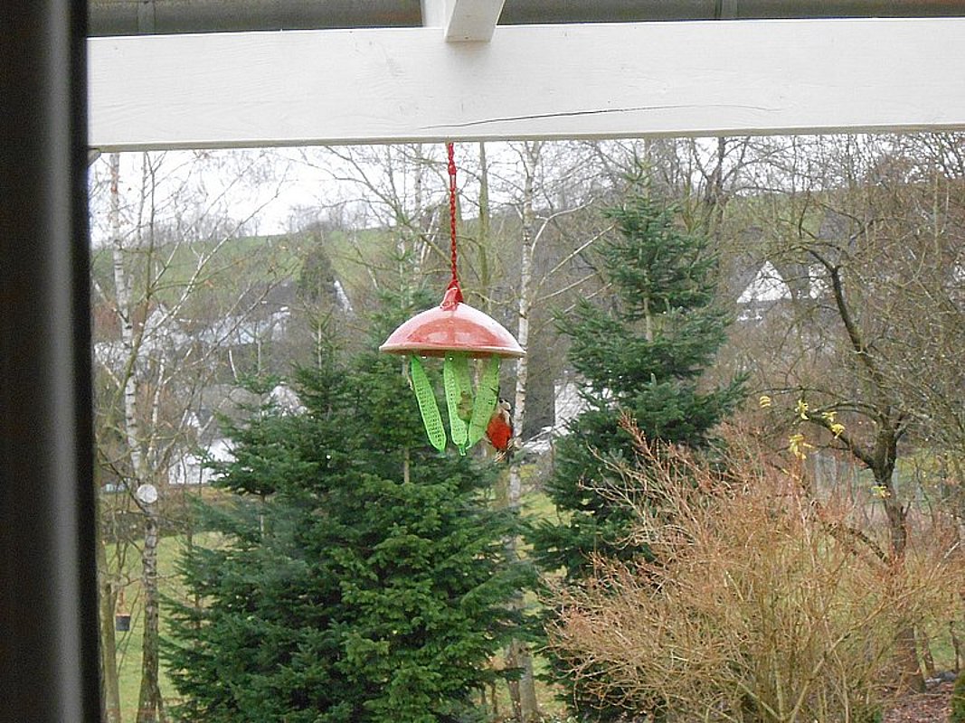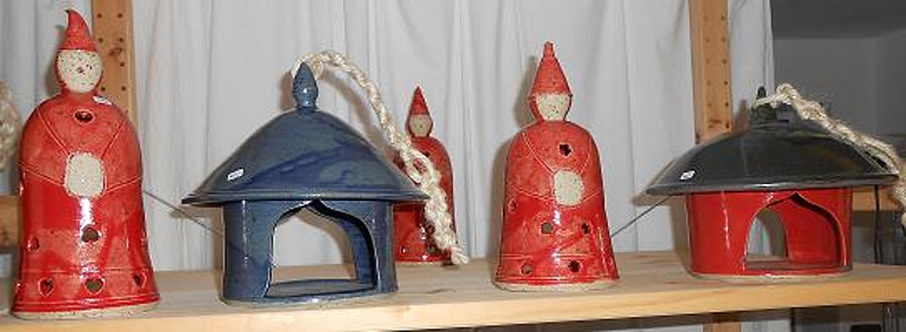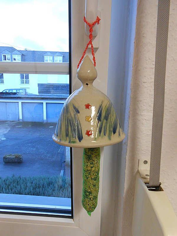 Vogelfutter-Glocken und Nisthäuschen